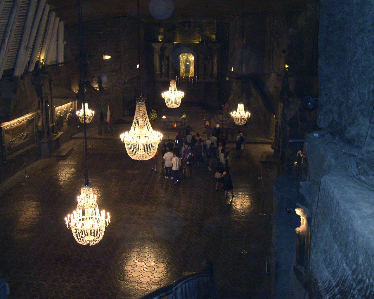 Byl jsem tam (přímo v dole) několikrát na výletě, ohromný zážitek. V solné sloji je vysekán celý kostel, včetně obrazů, lustrů, oltáře atd. Lízání stěn dovoleno.