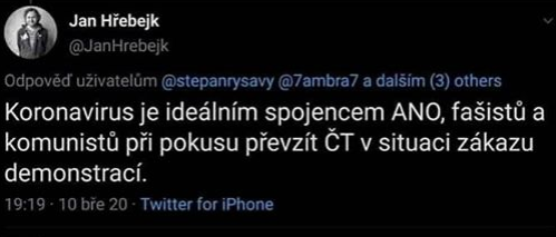 Hele, já nebudu spekulovat o datumech a názvech opatření, ale jsem přesvědčen, že nouzový stav bude trvat ještě několik měsíců. A že se bude spíše zpřísňovat. Jak jsem už psal dříve, ani bych se nedivil (pokud tenhle průser dosáhne určité míry) mnohem tvrdším opatřením na úrovni stanného práva. Že by to kompletně a na dlouho změnilo politicko-ekonomický systém, se samo nabízí. Zdaleka ne jen v ČR, v Evropě.
