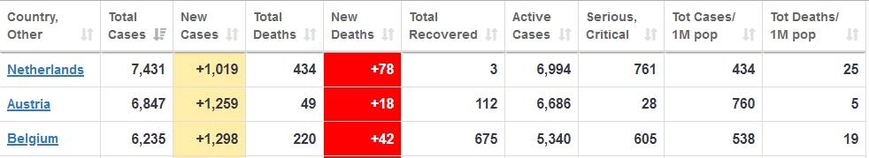 Najlepsie asi situaciu zvladaju DE, ak je pravda, ze robia 500k testov tyzdenne ak ich cisla su naozaj male a najblizsie k skutocnemu poctu nakazenych.