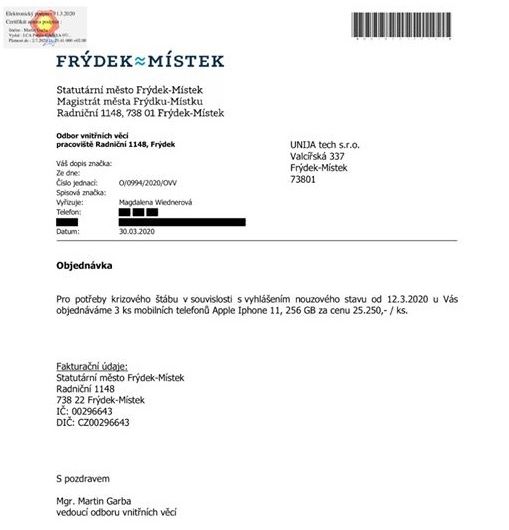 To je jen polovina. Ještě existuje objednávka z 1.4. na další dva Iphone 11 a a jeden Xiaomi. Dohrom… nový