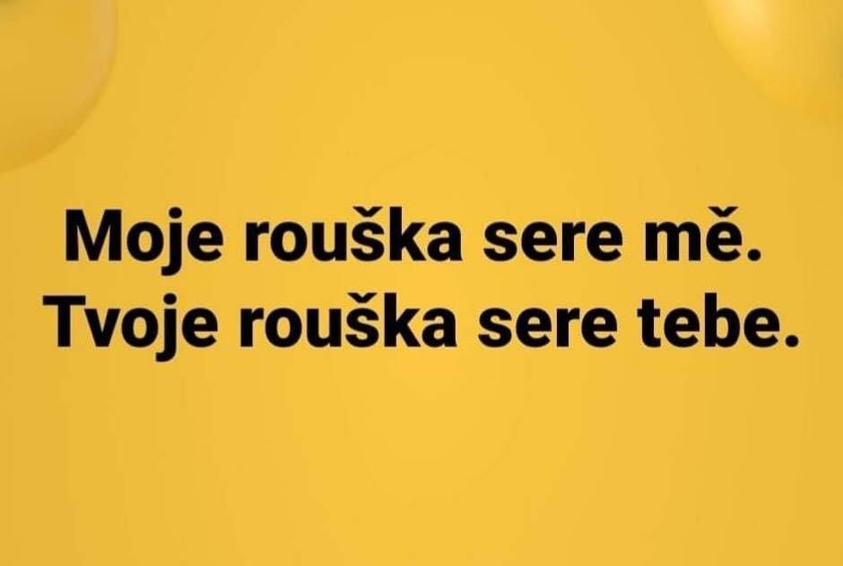 Vcera rano byla v tramvaji a v buse vetsina lidi v rousce, treba v tramvaji z dvaceti lidi jsme byli bez rousky jen tri. Nasledne v autobuse prede mnou sedela holka s klukem a ta holka tomu klukovi rikala, ze ten chlap (myslela me) nema nasazenou rousku. Kluk ji vysvetloval, ze uz se nemusi. Ona na nej zustala zirat a povida: A my ji teda mame na hube proc? A sundala to.