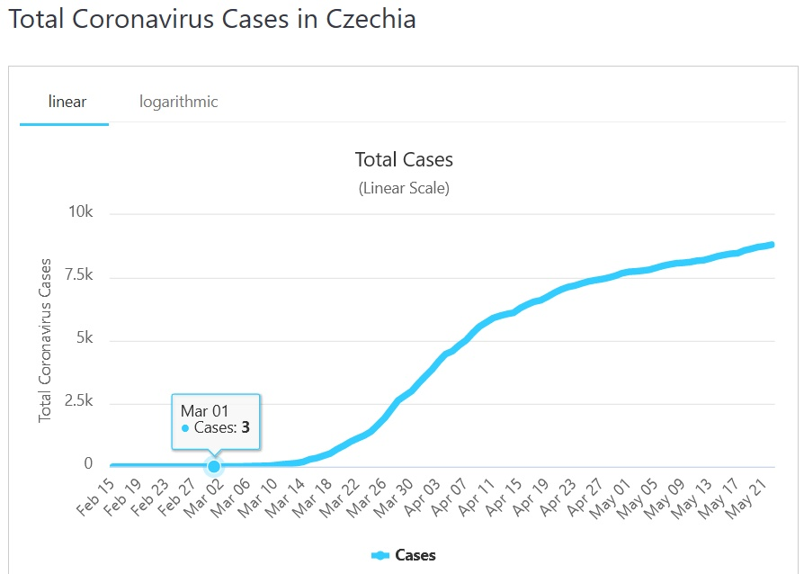 Ten článek je o Česku. A tady to "propuklo" (první případy nakažených) někdy 1-2.3.2020