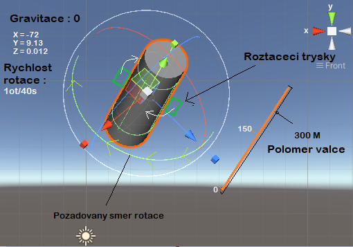Zober si, ze staci valec, ktory si nakreslil roztocit tryskami a bude sa tocit donekonecna, pretoze…
