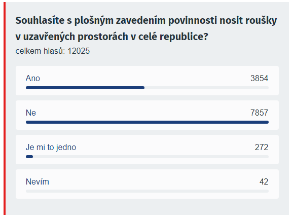 Uvidíme, jak moc bude společnost ochotná restrikce dodržovat, po projevech typu "jsme nejlepší, všichni se od nás učí, zachraňuju mrtvé, Vojtěchovy roušky v srpnu byly omyl, díky semaforu a chytré karanténě už nikdy plošná opatření..."