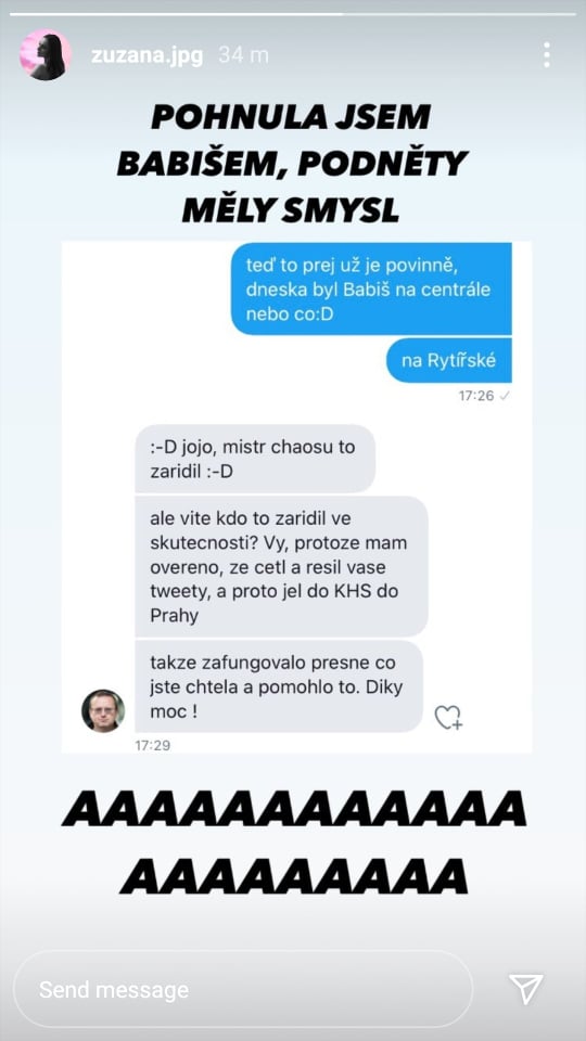 Teď mi spadla brada. Medička si na TW stěžuje na činnosti KHS, ozve se jí výše uvedený Michal Bláha a nakonec na instagramu vidím, že Mistr osobně se věcí zaobírá. Country for the future.
