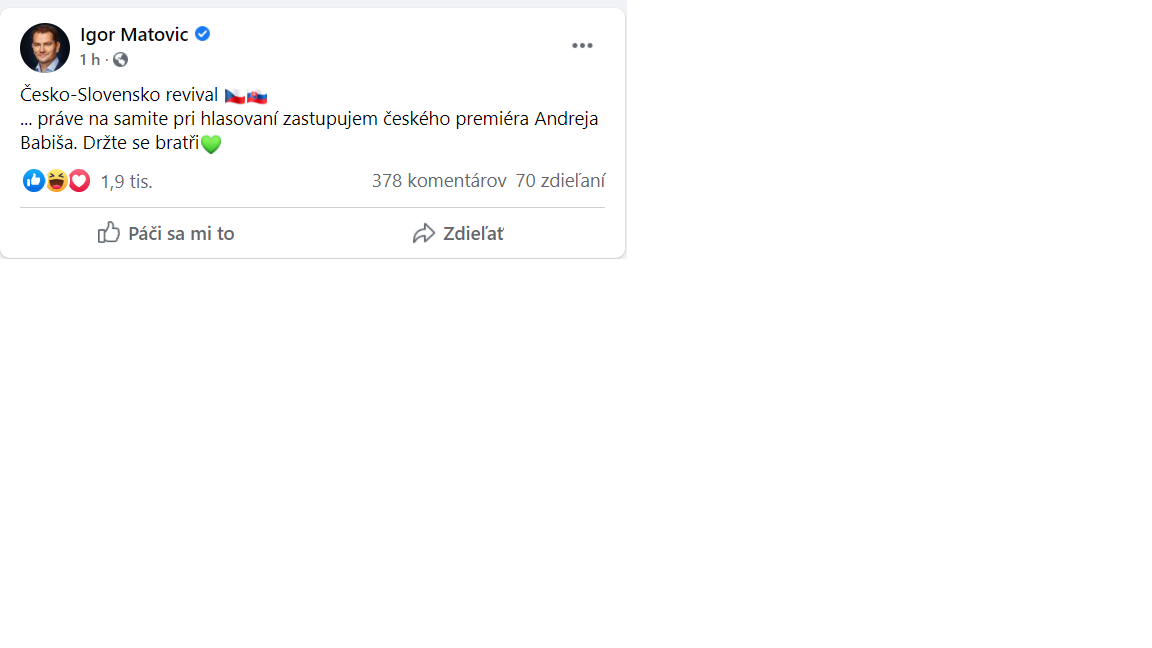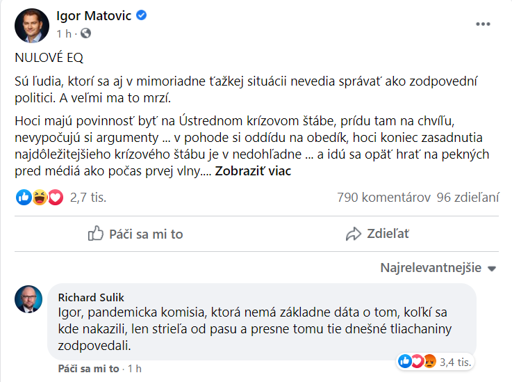 Nie nezijeme v bubline a pozerat sa len na to, co je u nas a ze opatrenia proti Covidu nas ruinuju lebo Matovic a spol je silne kratkozrake.