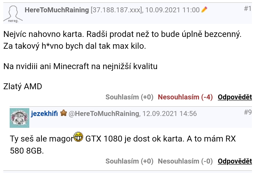 Tedy "rada" na dotaz ohledně herní sestavy spočívající v názoru na geometrický tvar Země a hodnocení podporovatele takového názoru se bezesporu dá označit jako s*ačka. S notnou dávkou sebezapřesní se zajisté dá označit jako ironie/metafora/cokoli, ale stále ne jako rada, což bylo pro posouzení věci zdá se klíčové ....