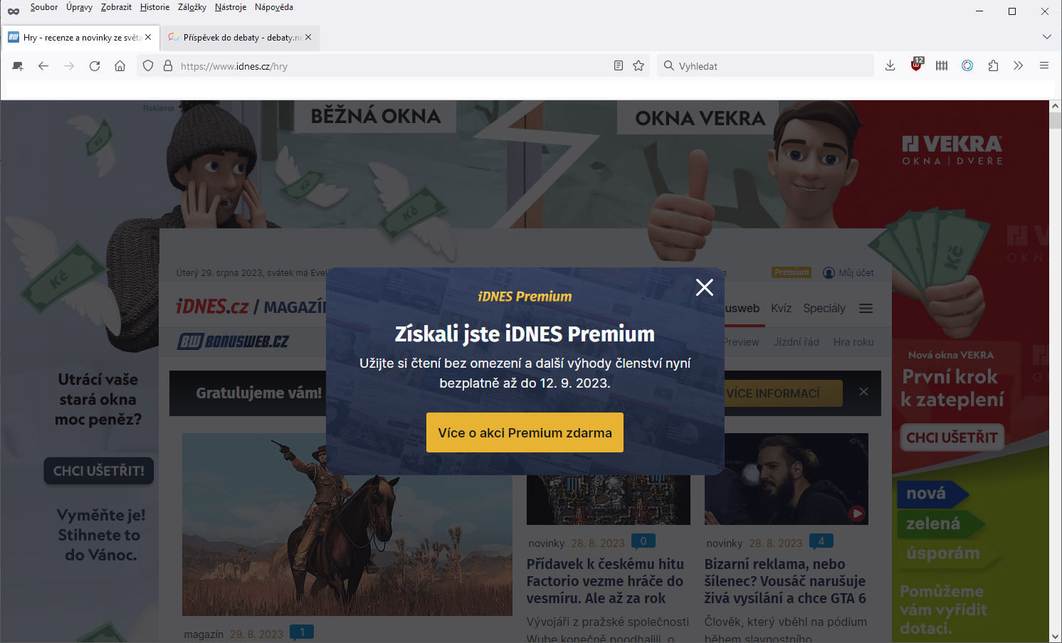 Na idnesu jsem premium mela asi 2x, kdyz ho nabizeli zadara nebo za korunu. Za vic mi to nestalo