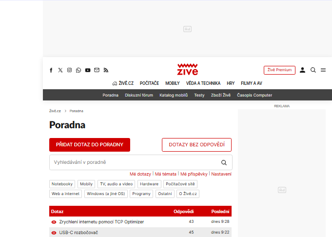 Do ted jsem aspon nejakou reklamu na Zive ignoroval. Od ted uz jen takto: