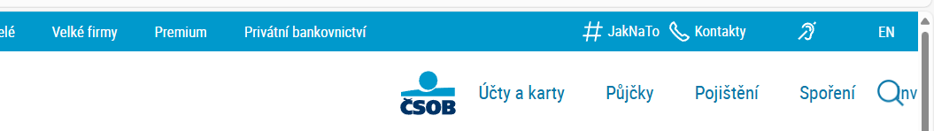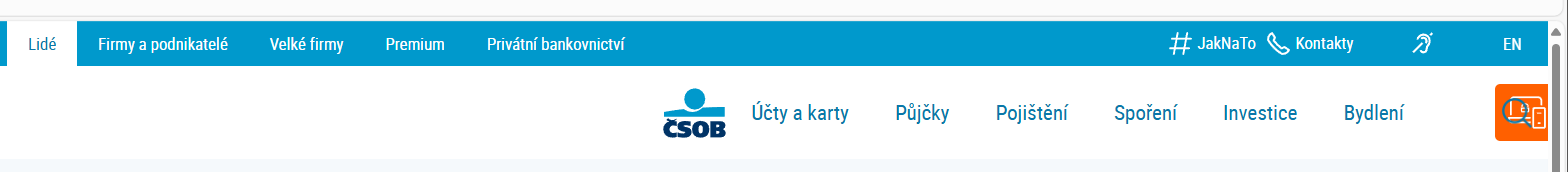 Pustím si stránku banky https://www.csob.cz/ a marně hledám odkaz na bankovnictví - prohlížeč Opera, který nemám roztažený na celou obrazovku. Připadal jsem si jako debil. Tak jsem si přes vyhledávač našel odkaz pro vstup do bankovnictví a aktivoval ho.
